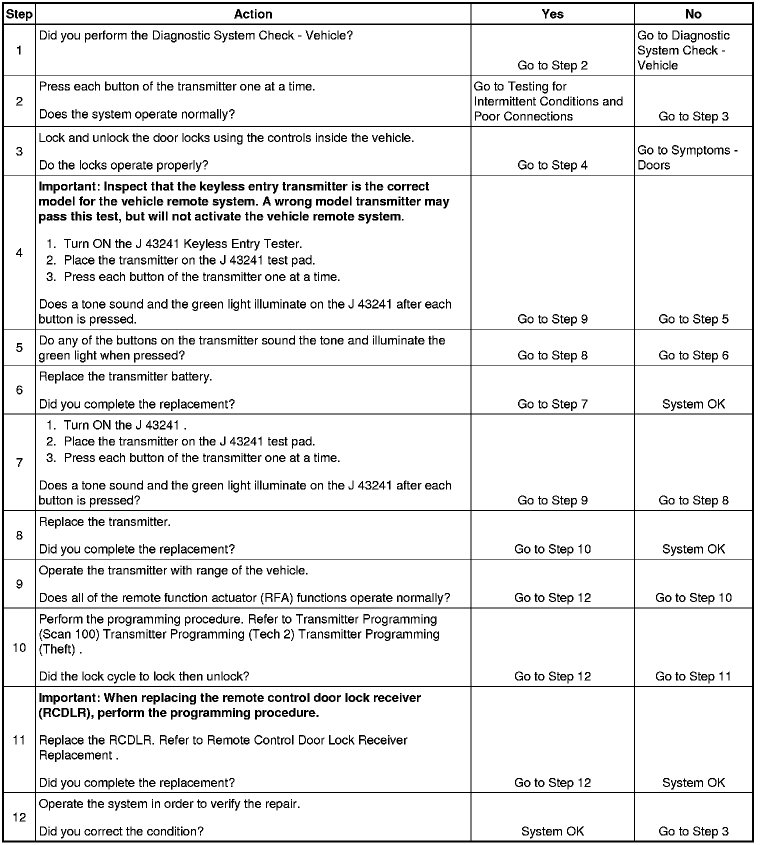 Keyless Entry Does Not Program