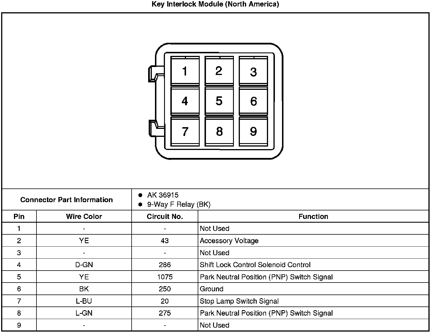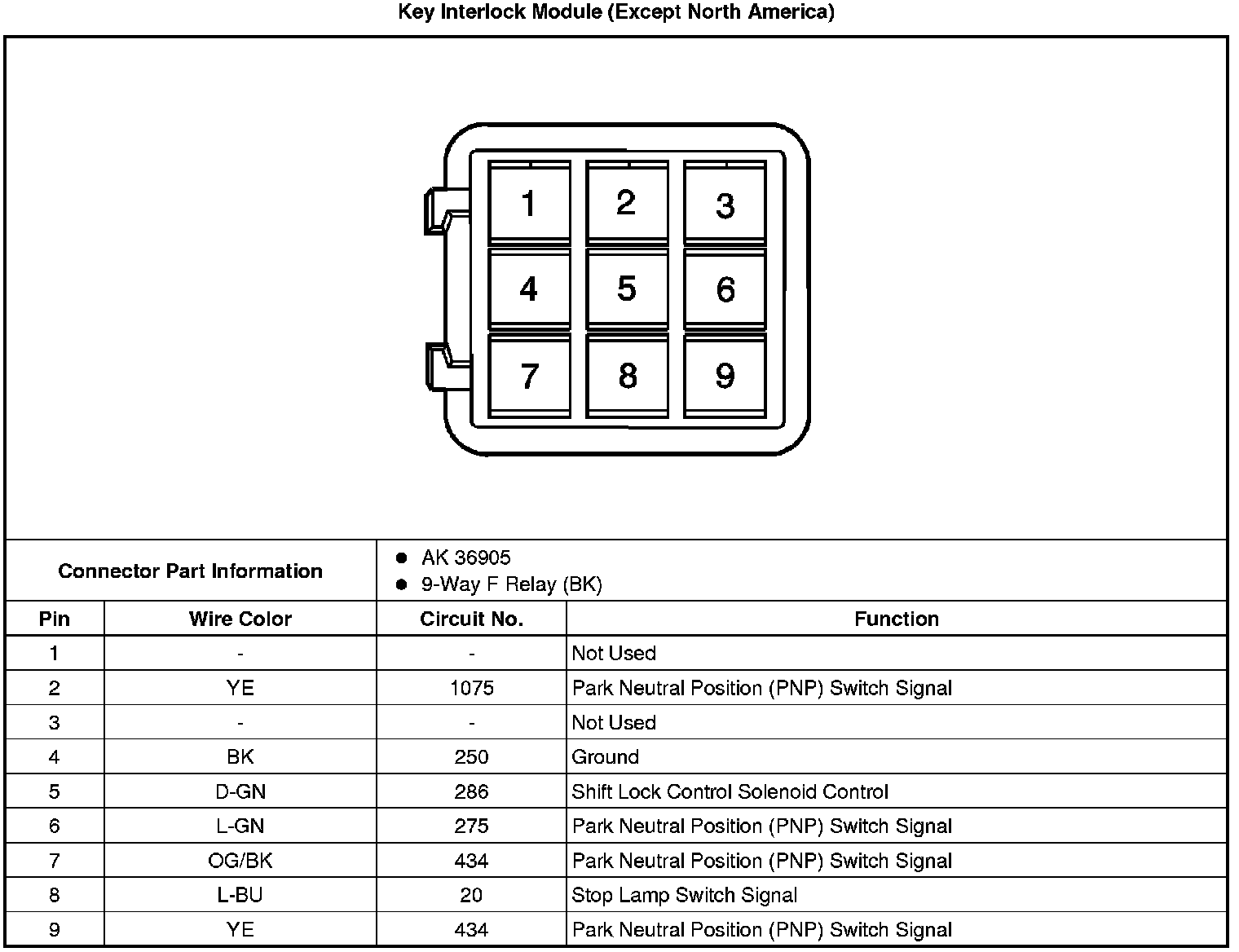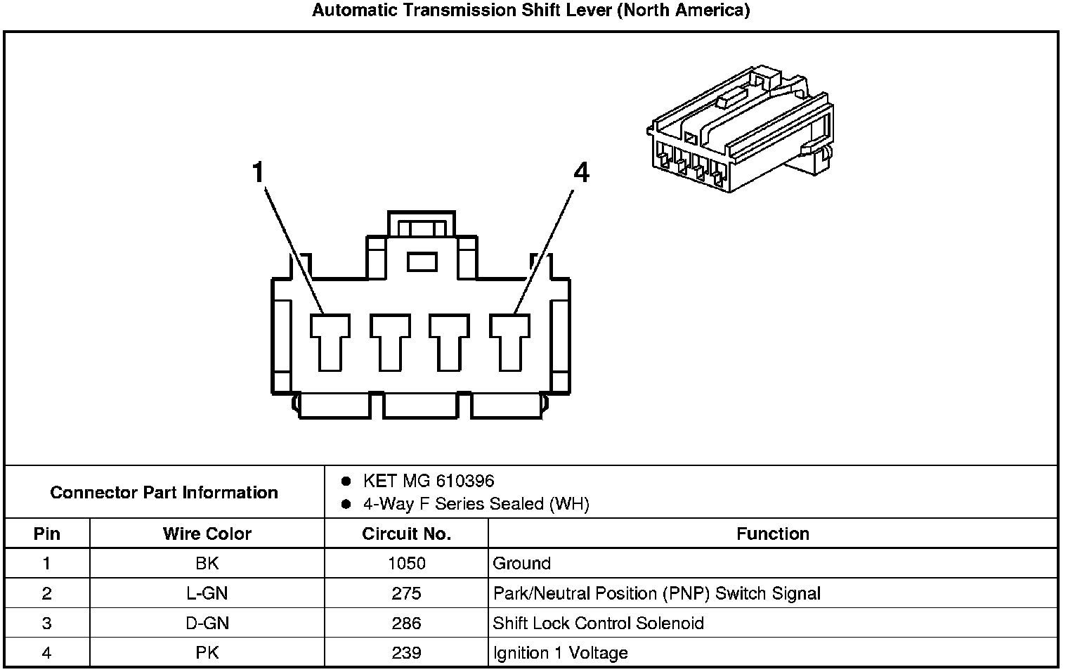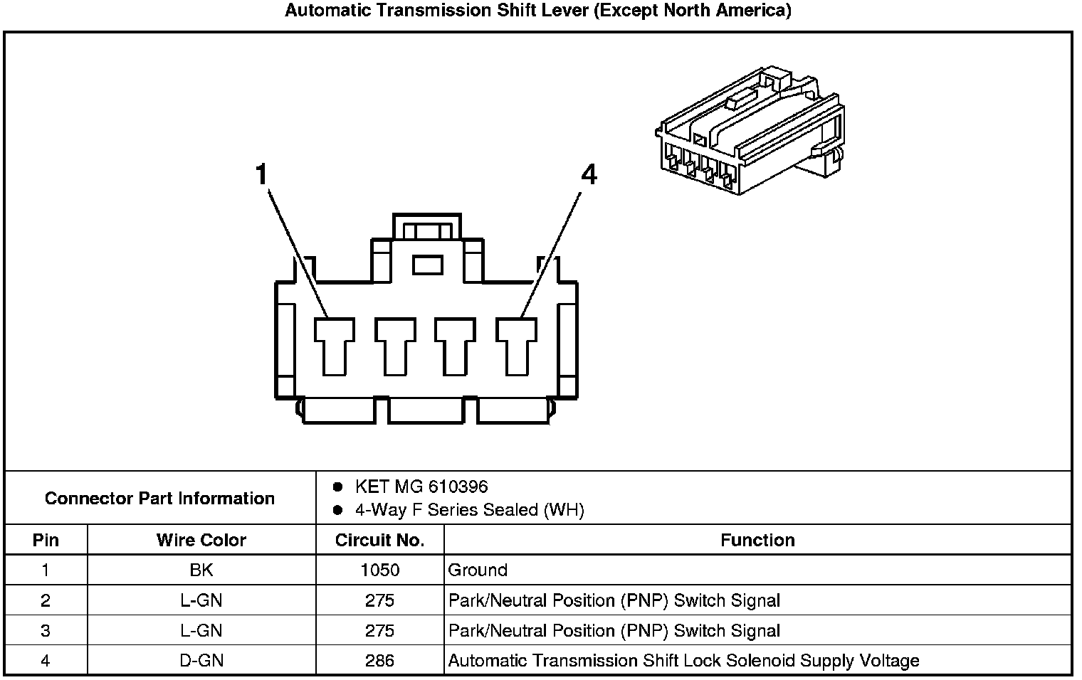 Automatic Transmission Shift Lock Control Connector End Views