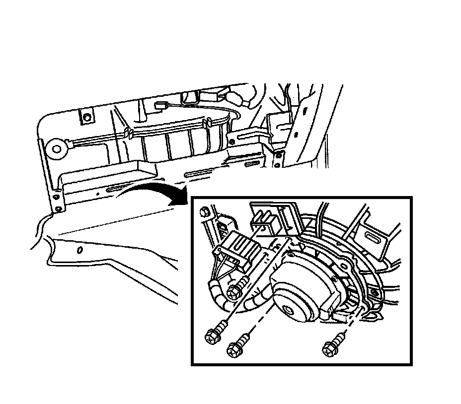 2. Install the screws to secure the blower motor to the heater/air distributor case.