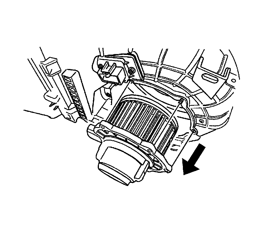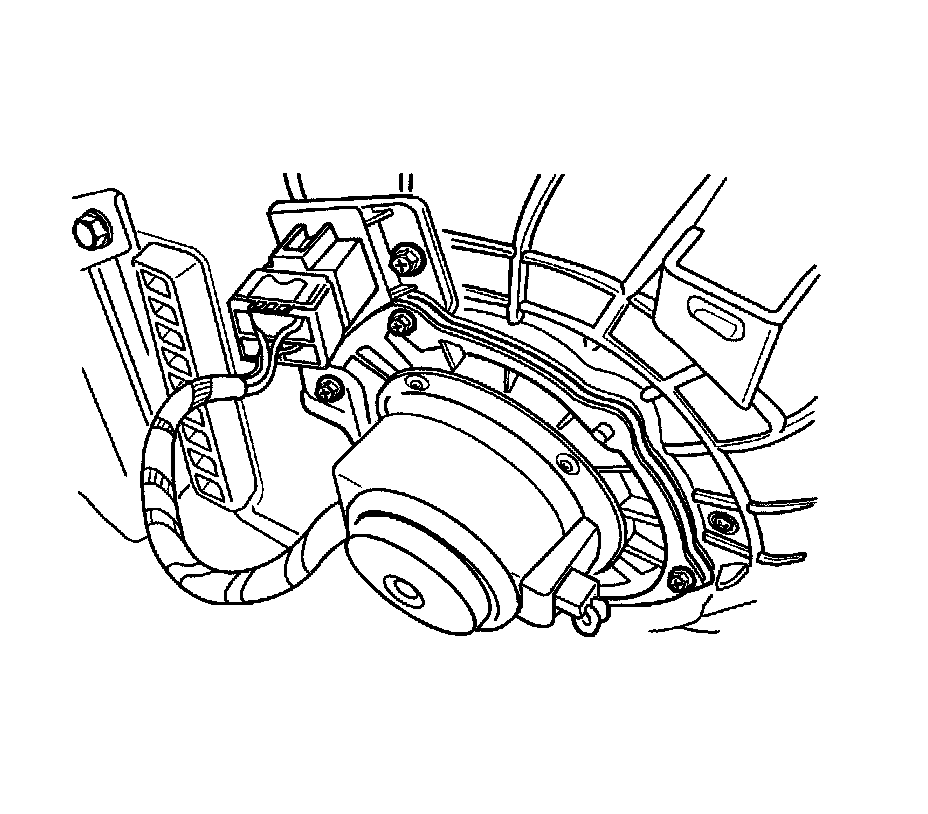 1. Install the blower motor and the seal with the shock mount pads in the heater/air distributor case. Hold the blower motor in position.