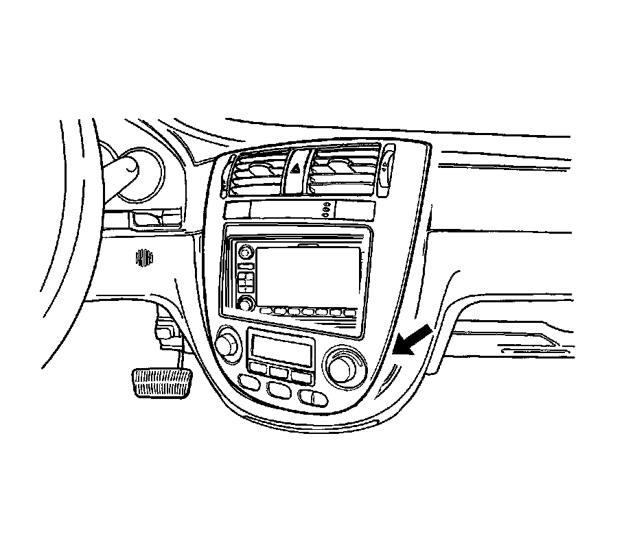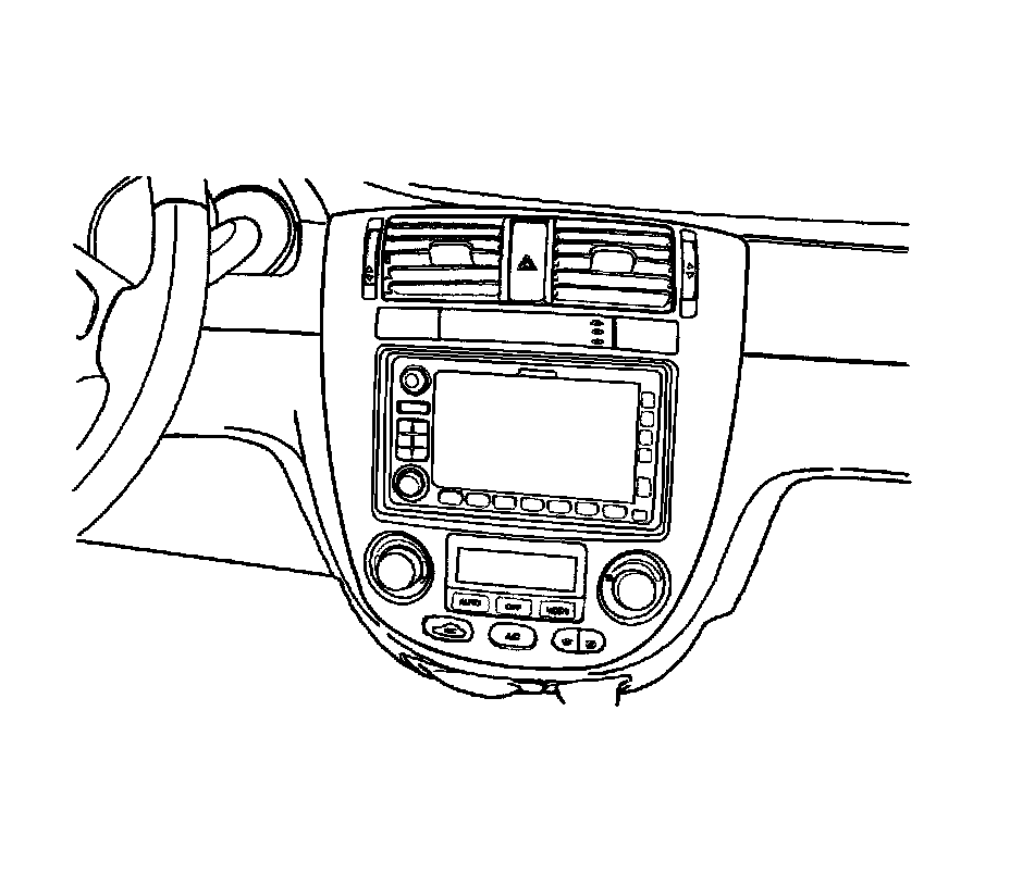 2. Remove the center molding assembly. Refer to Trim Panel Replacement - Instrument Panel (I/P) Center (Four Door) Trim Panel Replacement - Instrument Panel (I/P) Center (Four Door)Trim Panel Replacement - Instrument Panel (I/P) Center (Five Door/Wagon) Trim Panel Replacement - Instrument Panel (I/P) Center (Five Door/Wagon) in Instrument Panel, Gages and Console.