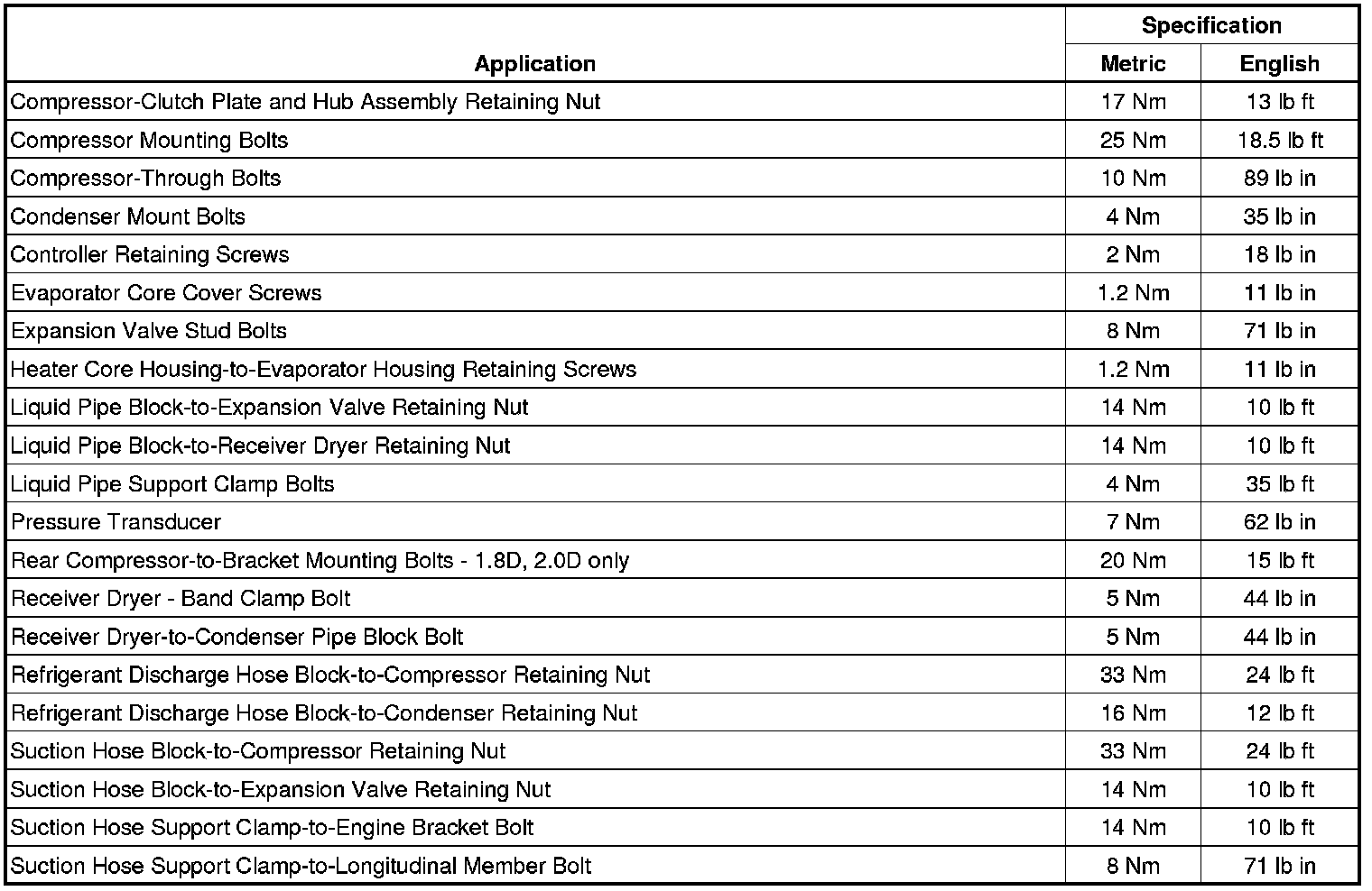 Fastener Tightening Specifications