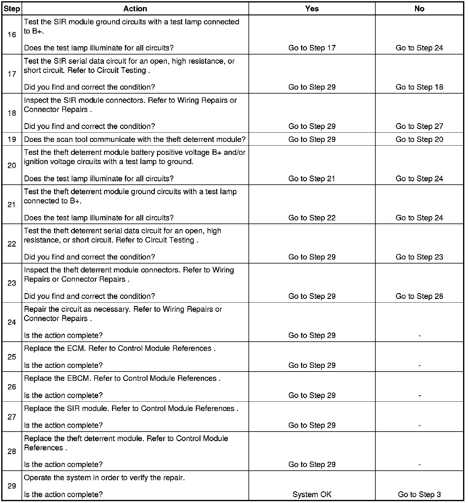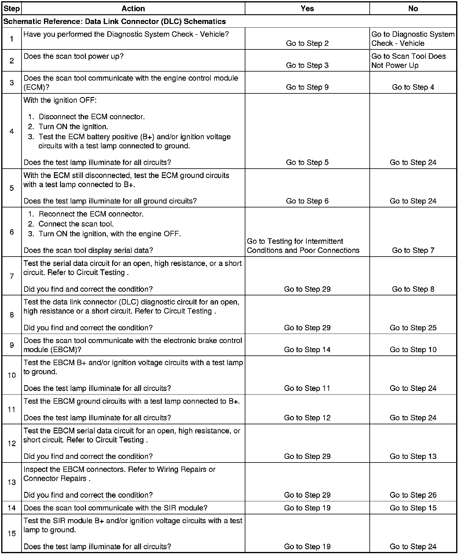 14. This step checks to see if the SIR system is not communicating with the scan tool.