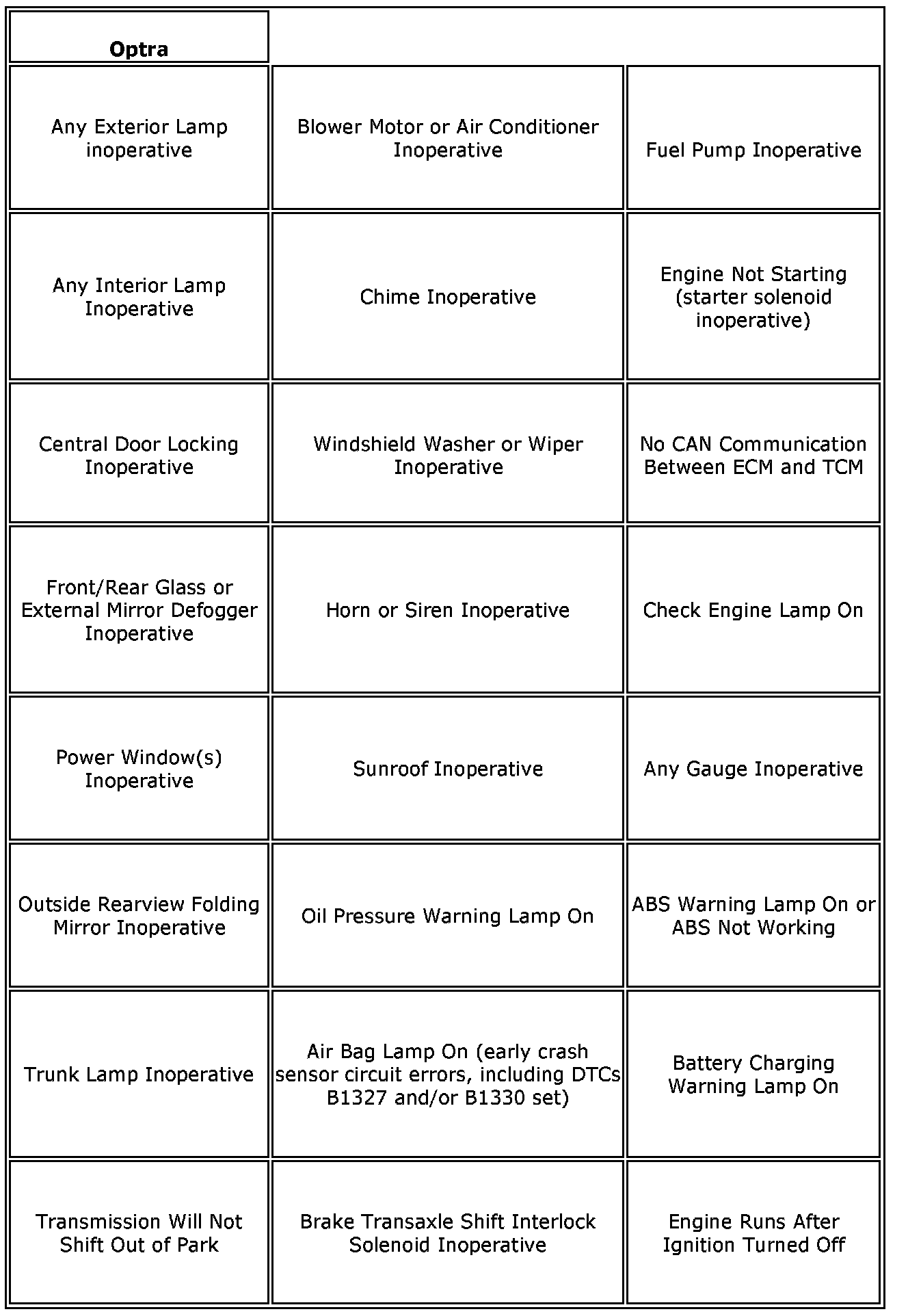 2004-2007 Chevrolet Optra Built Prior to VIN Breakpoint 7K492368 (Canada and Export Only)