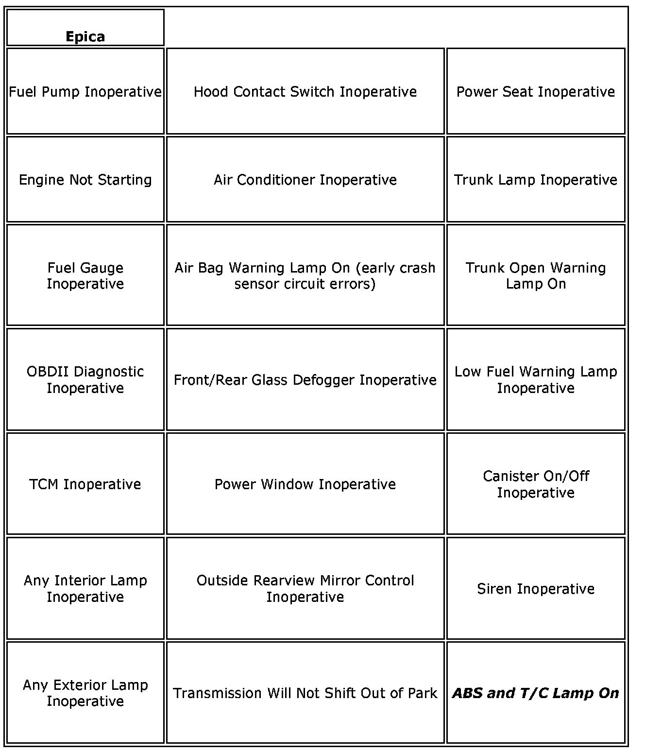 2004-2005 Chevrolet Epica Built Prior to VIN Breakpoint 5B174211 (Canada and Export Only)