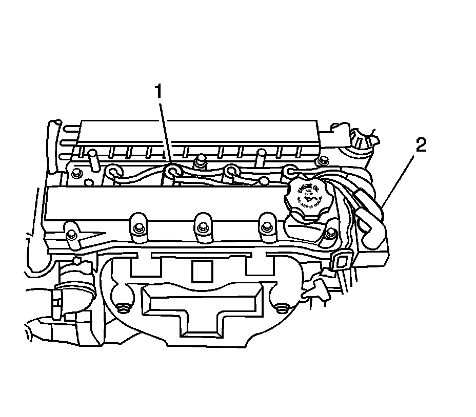 3. Disconnect the spark plug wire (1) at each spark plug.