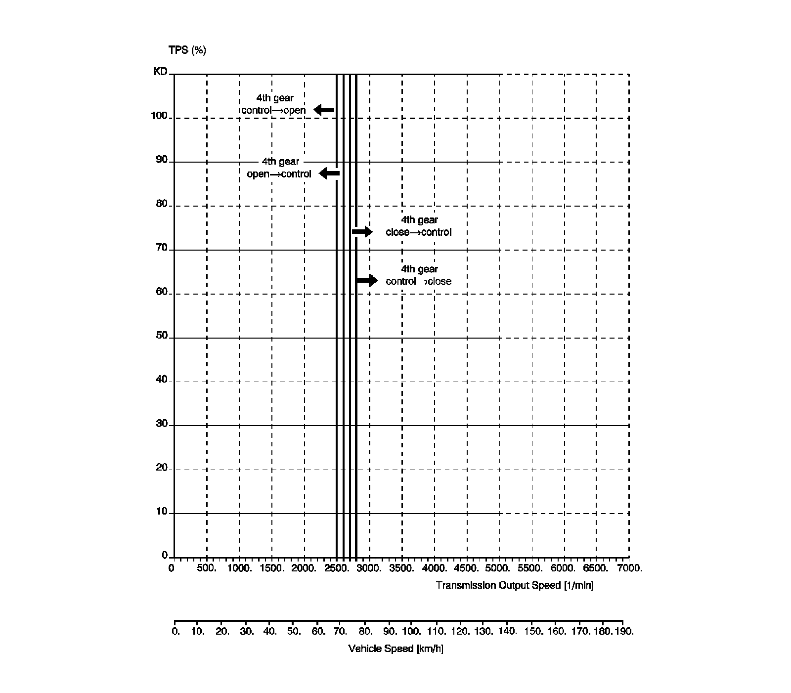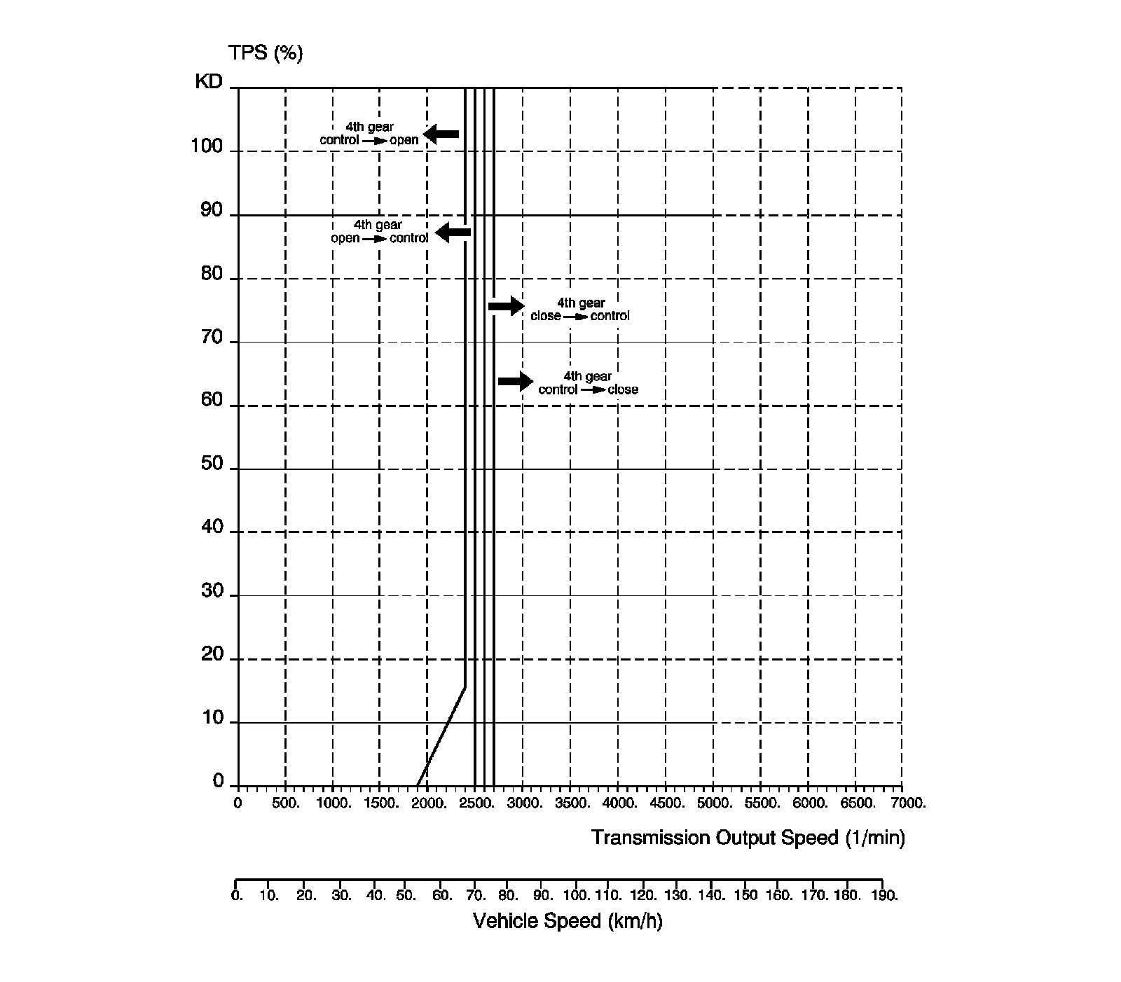 Lock-up Clutch Applied: Economic Mode, Fourth Gear - 2.0L DOHC