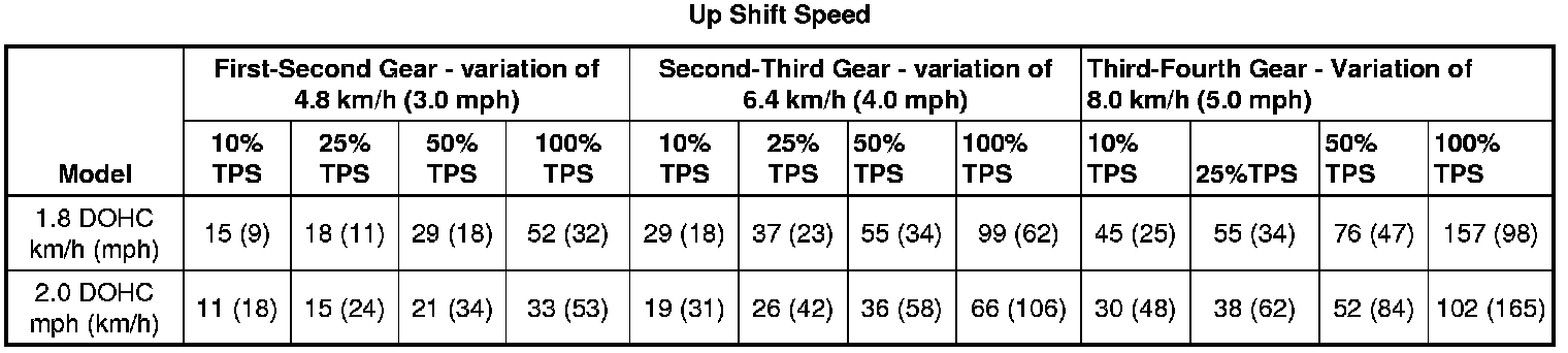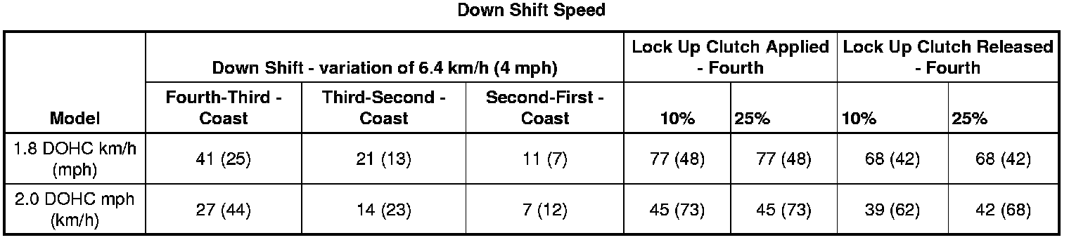 Lock-up Clutch Applied: Economic Mode, Fourth Gear - 1.8 DOHC