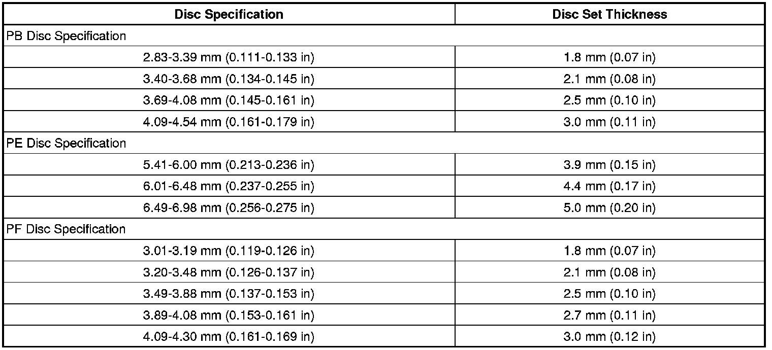 Disk Set Thickness Table