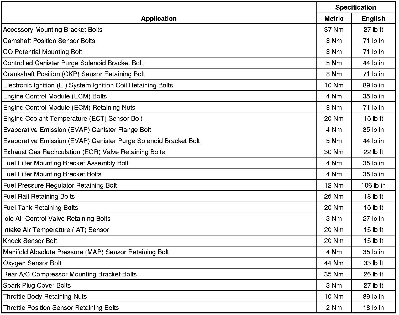 Fastener Tightening Specifications