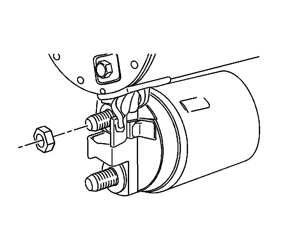 7. Install the field coil connection to the starter terminal. Install the nut.
