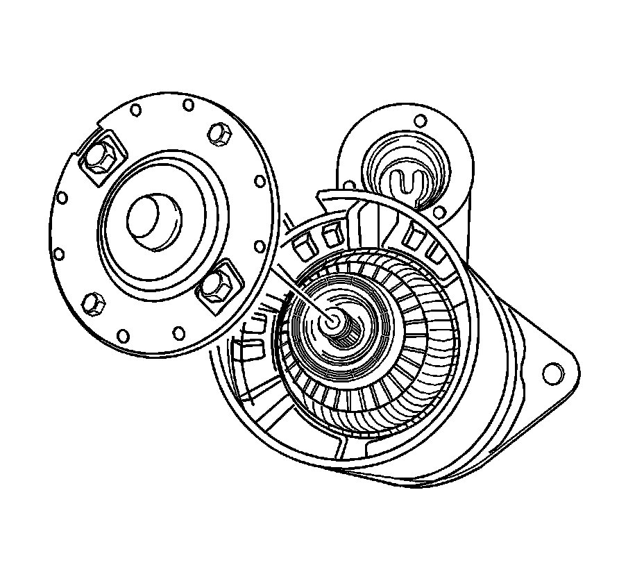 11. Position the commutator end frame/brush holder assembly, lining up the end frame holes with the through-bolt holes in the housing.
