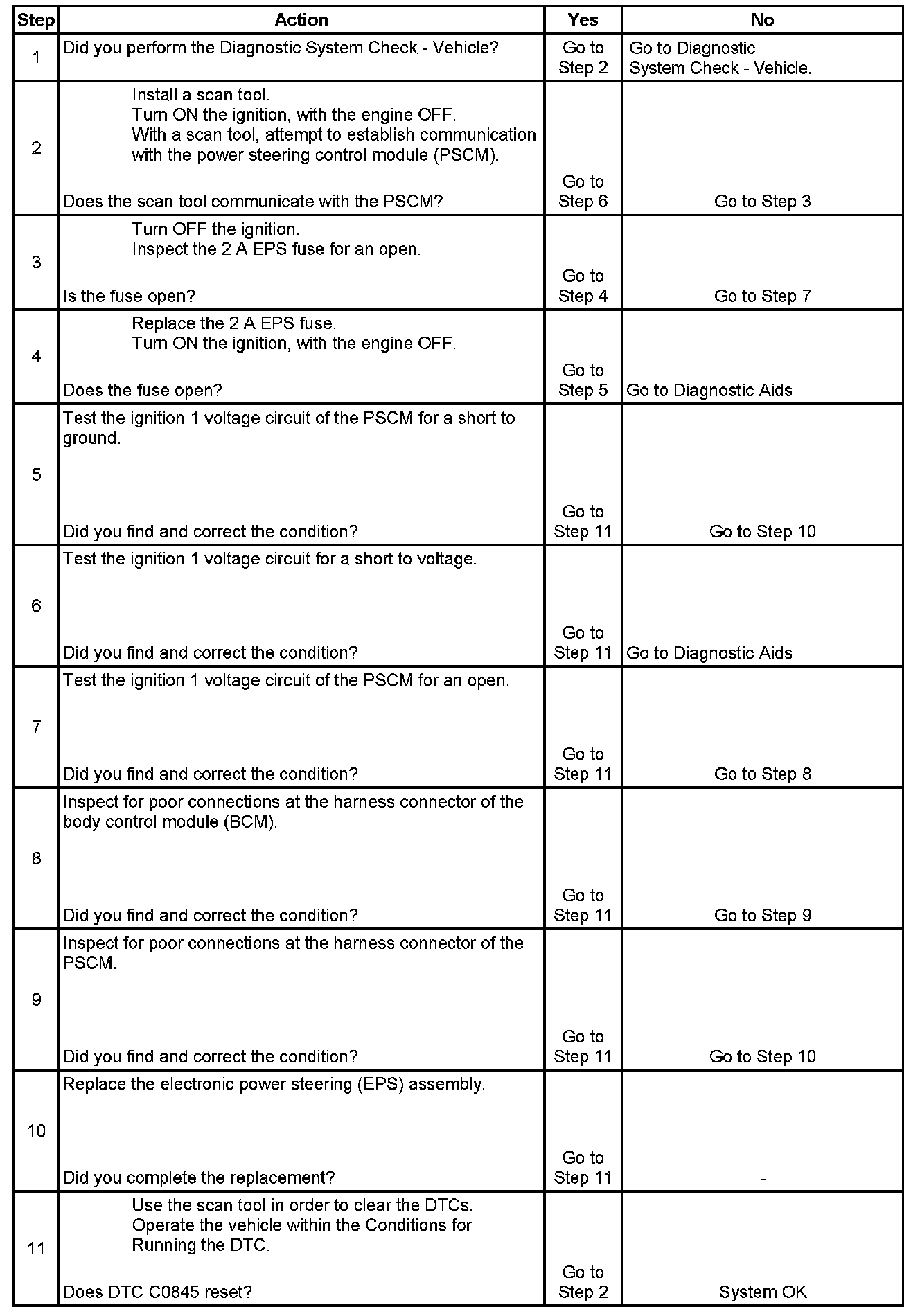 5. This step tests if a short to ground exists in the ignition 1 voltage circuit, or in the PSCM.