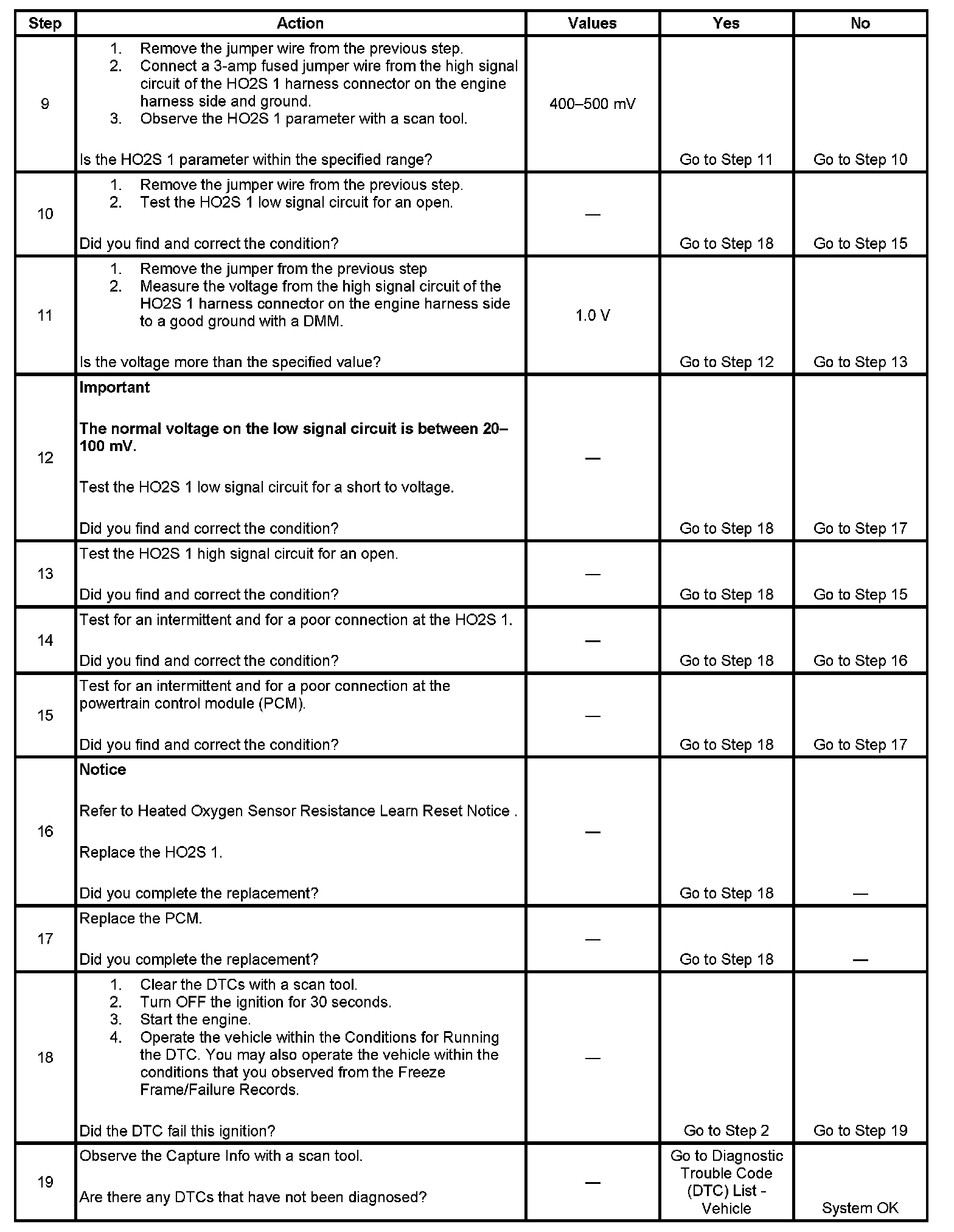 If the PCM detects that the HO2S voltage remains within the bias voltage range, DTC P0134 will set.