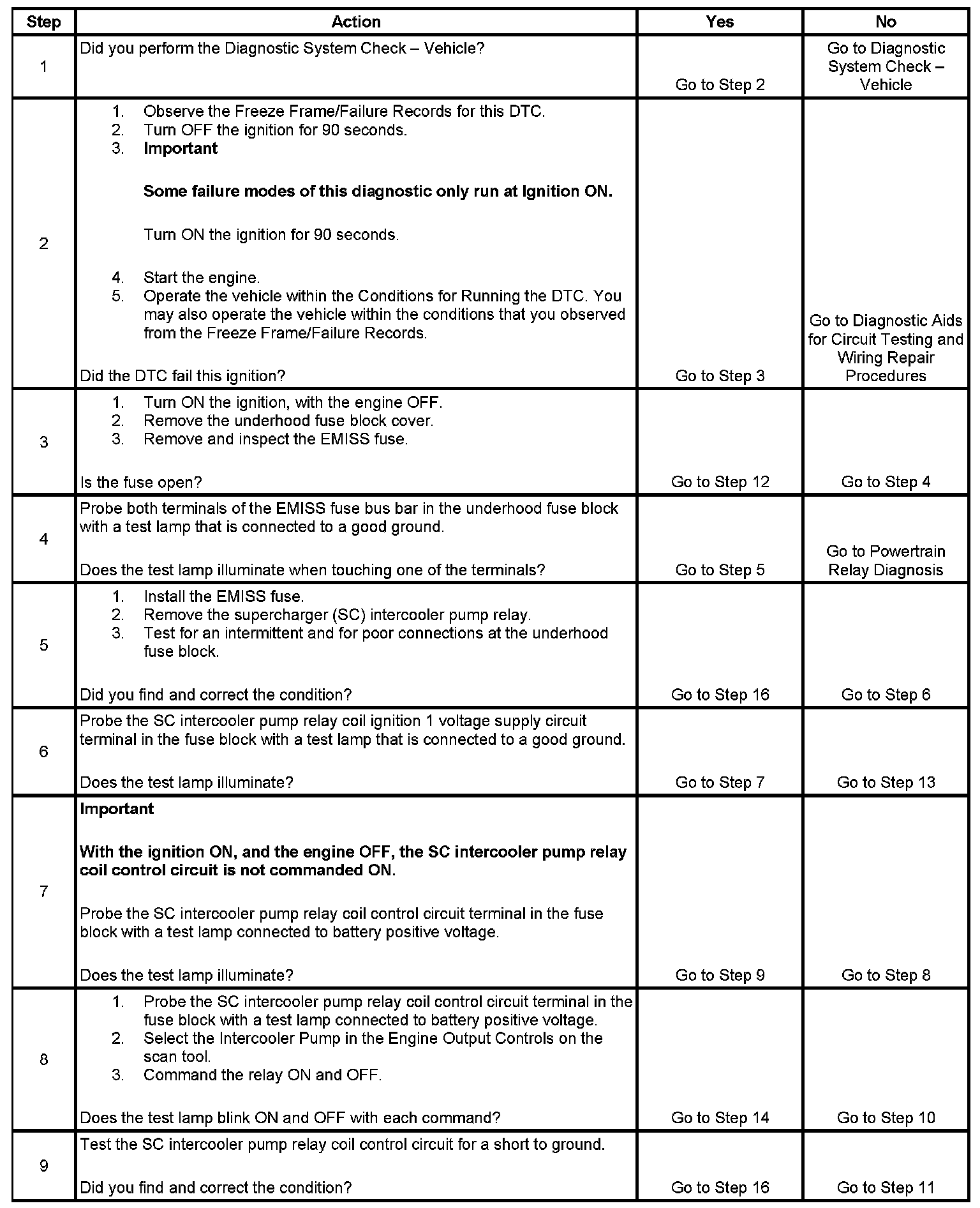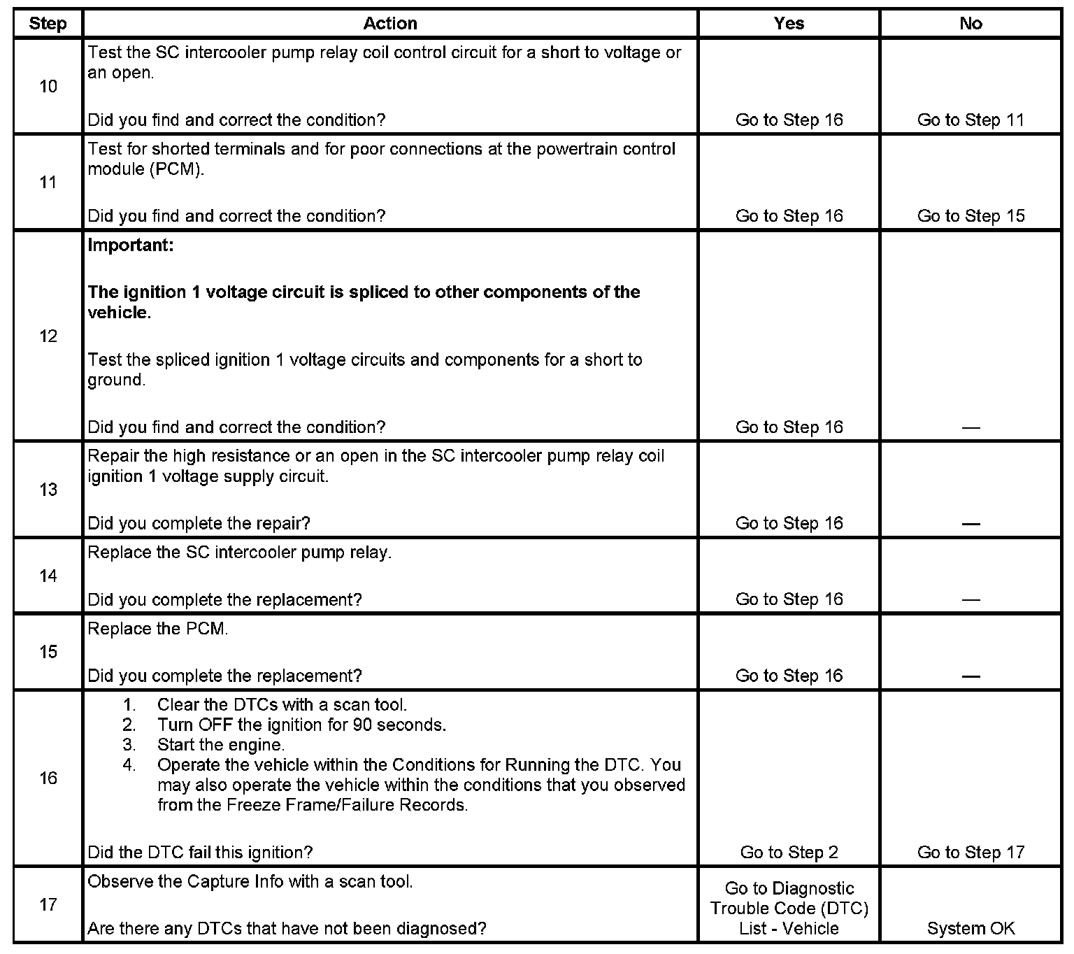 The PCM detects an improper voltage on the supercharger intercooler pump relay control circuit for more than 30 seconds.