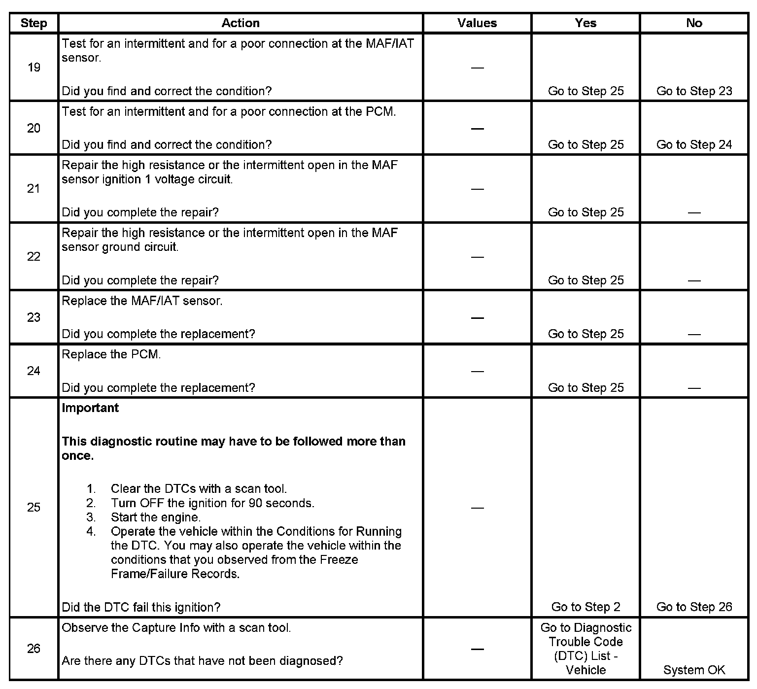 18. This step will determine if an abnormal resistance or a short to the IAT signal circuit has skewed the MAF sensor frequency signal.