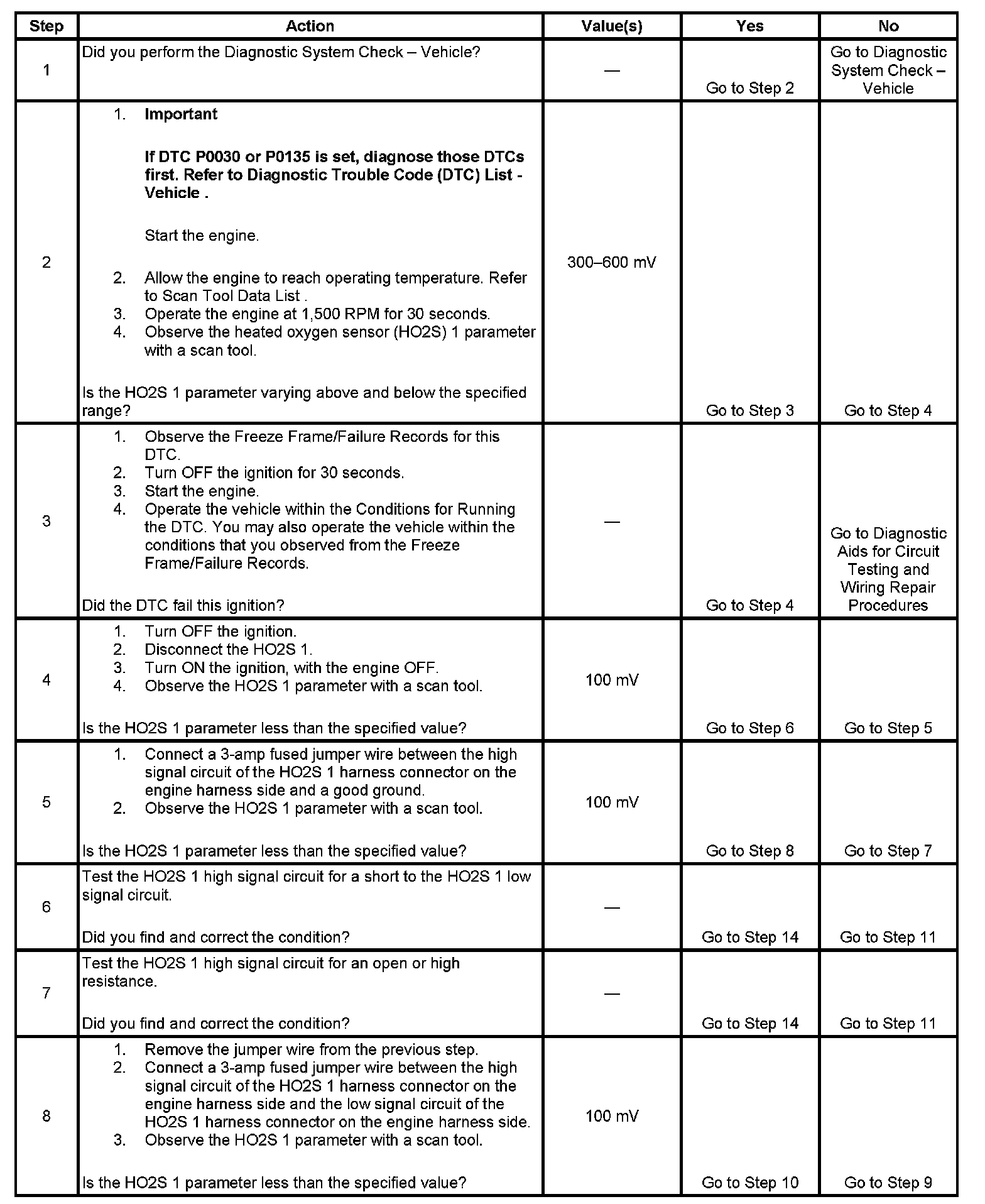 This diagnostic will only run once per ignition cycle. The PCM monitors the number of rich-to-lean and lean-to-rich transitions. If the PCM detects that the number of transitions were less than a specified value, DTC P1133 will set.