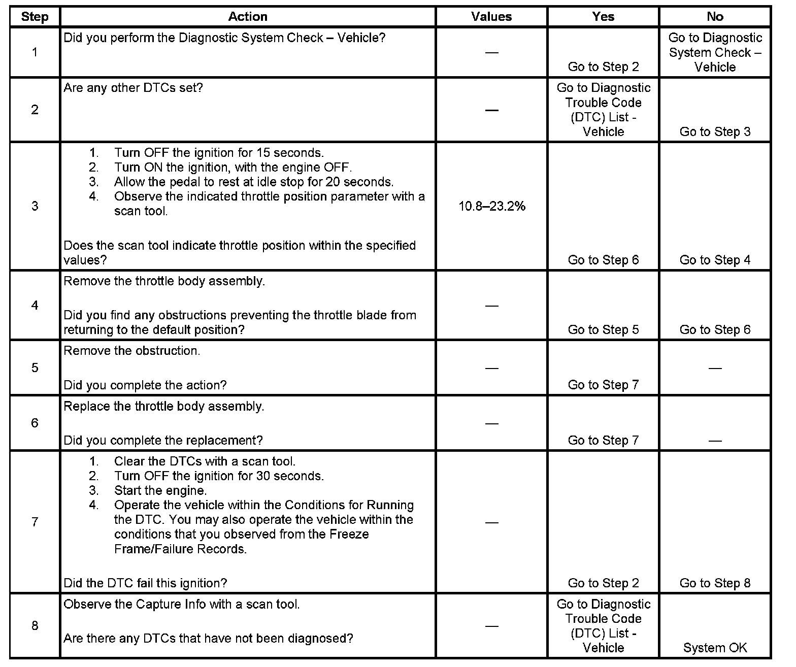 8. More than one ETC system related DTC may set. This is due to the many redundant tests run continuously on this system. Locating and repairing one individual condition may correct more than one DTC. Keep this in mind when reviewing captured DTC info.