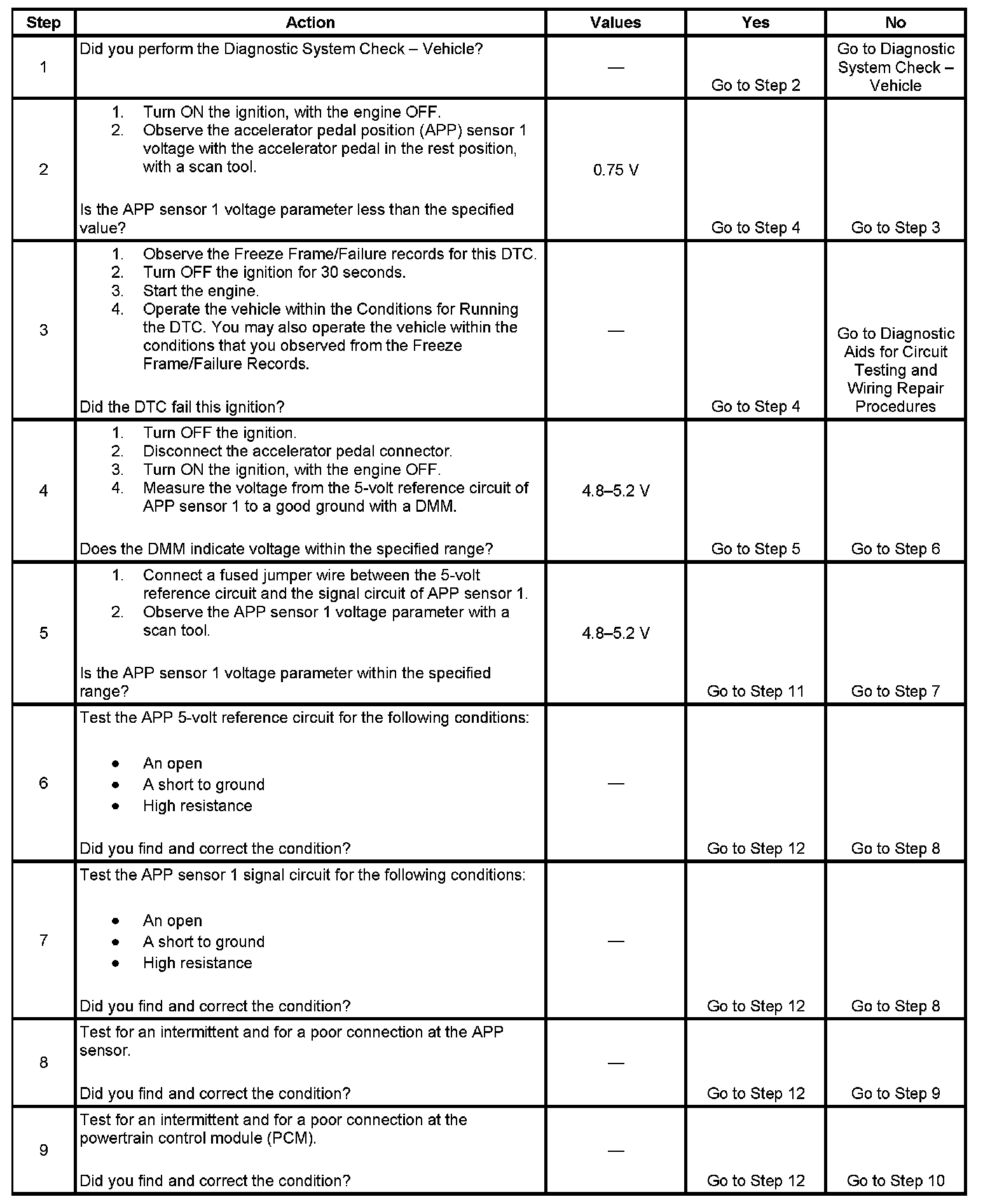 DTC P2122 Accelerator Pedal Position (APP) Sensor 1 Circuit Low Voltage