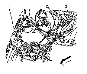 3. Remove the underhood electrical center bracket from the vehicle and reposition the electrical center (1) to access the bracket. Refer to Underhood Electrical Center or Junction Block Bracket Replacement.