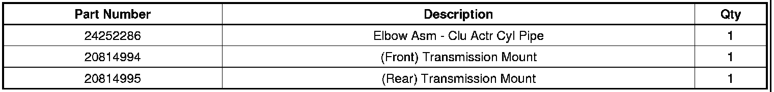 If this repair is approved by the District Service Manager/Warranty Manager, replace the transmission assembly. During removal of the transmission, replace the front (GM P/N 20814994) and rear (GM P/N 20814995) powertrain mounts. Refer to SI for the procedures on replacing the transmission front and rear mounts.