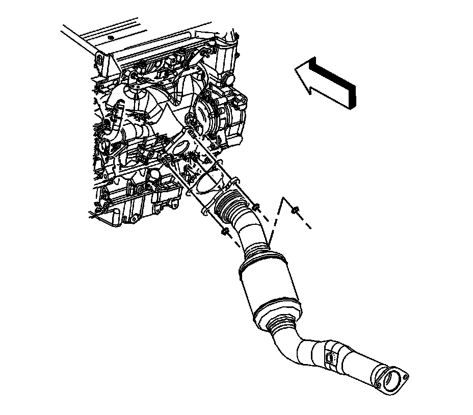 7. Pull the muffler pipe rearward and down until the studs are removed from the catalytic converter.