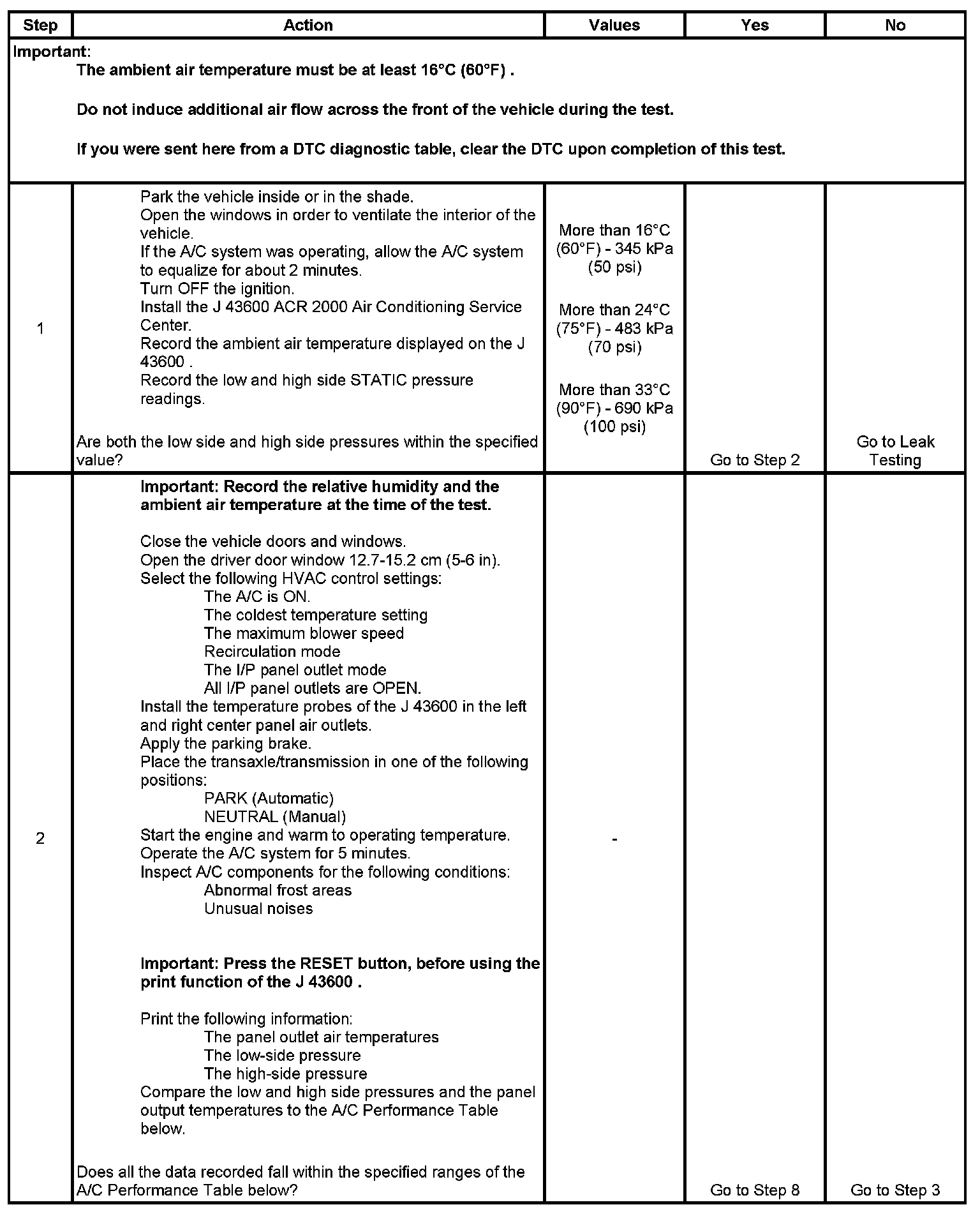 Air Conditioning (A/C) System Performance Test (RPO LSJ)
