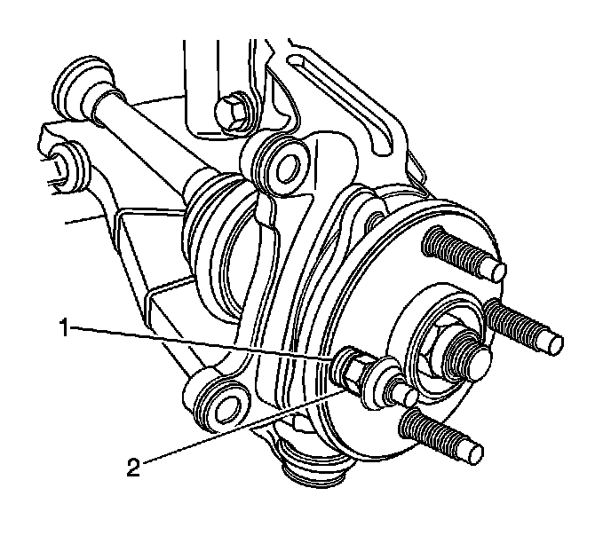 Notice: Avoid tool contact to the outer constant velocity boot seal when removing the wheel bearing mounting bolts. Failure to observe this notice may result in damage to the CV boot.