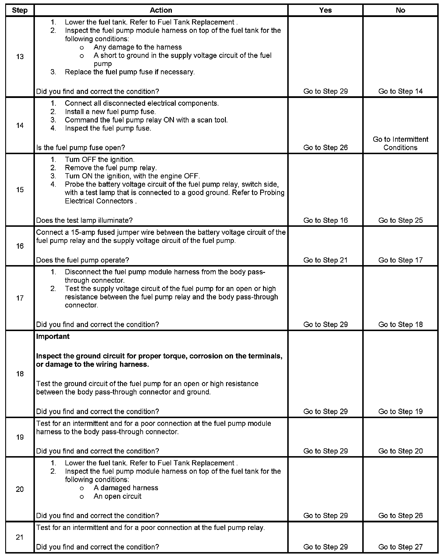 Fuel Pump Electrical Circuit Diagnosis