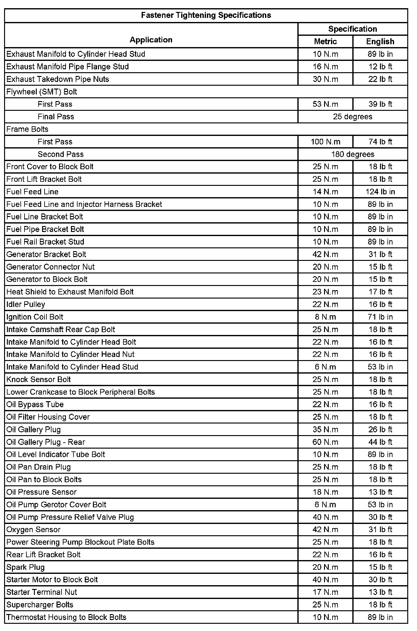 Fastener Tightening Specifications