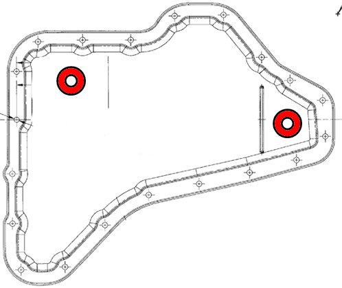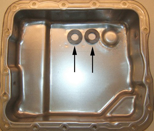 1. Remove and discard the original square transmission oil pan magnet and install a new one in the current location (See graphics below for the correct application).
