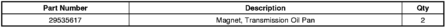A new transmission oil pan magnet, P/N 29535617, was released for service. The current square transmission oil pan magnet may become saturated with normal ferrous sediment and the Pressure Control Solenoid (PCS) is now collecting ferrous sediment, making it vary from design. For a given current the PCS electromagnet is stronger, causing the line pressure to be less than needed.