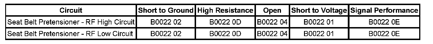 The seat belt pretensioner - RF high and/or low circuit is short to voltage for 120 milliseconds.