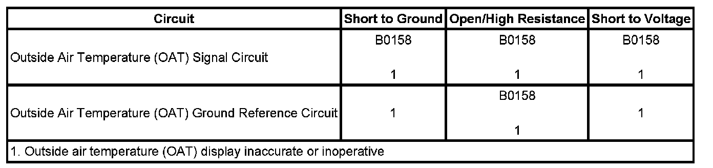 - Outside Air Temperature (OAT) Sensor Short to Battery or Open