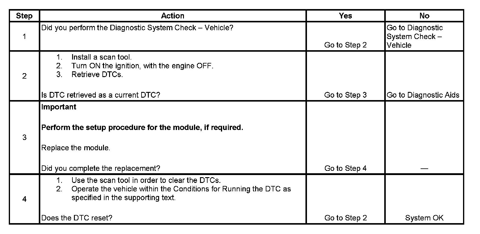 - If this DTC is retrieved as both a current and history DTC, replace the module.
