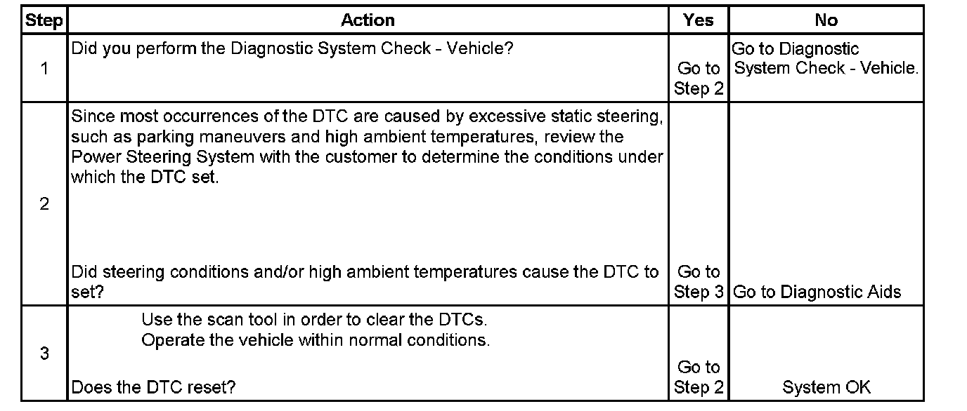 ^ A current DTC will clear when the Power Steering System temperature returns to normal.
