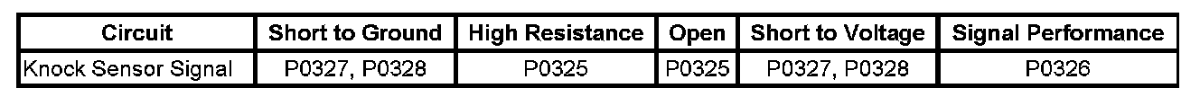 The knock sensor (KS) system enables the control module to control the ignition timing for the best possible performance while protecting the engine from potentially damaging levels of detonation. The KS is located on the intake side of the engine block. The KS produces an AC voltage signal that varies depending on the vibration level during engine operation. The control module receives the KS signal through 2 isolated signal circuits. The control module adjusts the spark timing based on the amplitude and the frequency of the KS signal.