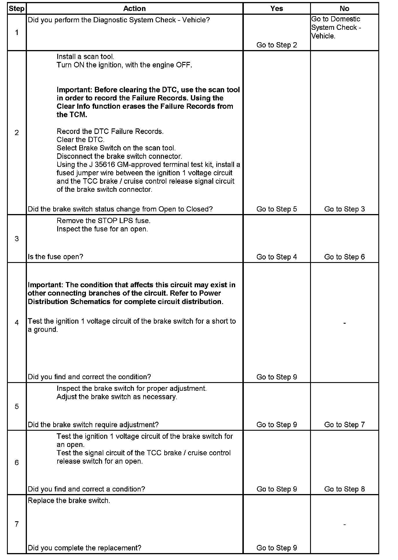 2. Disconnecting the brake switch connector jumping the circuit, and observing a status change, isolates the brake switch as the source of the DTC.