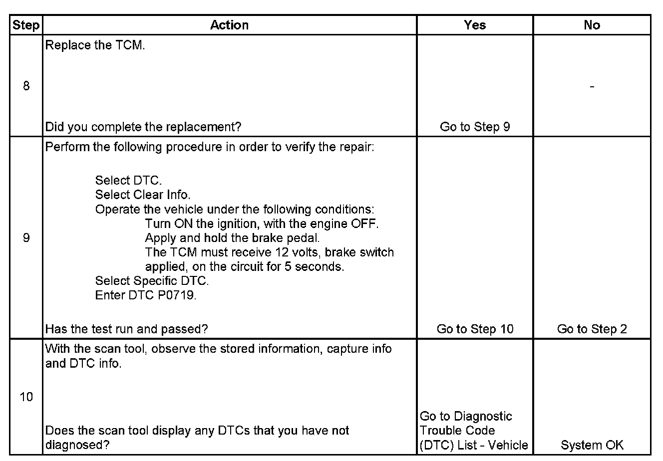 ^ The TCM stores DTC P0719 in TCM history.
