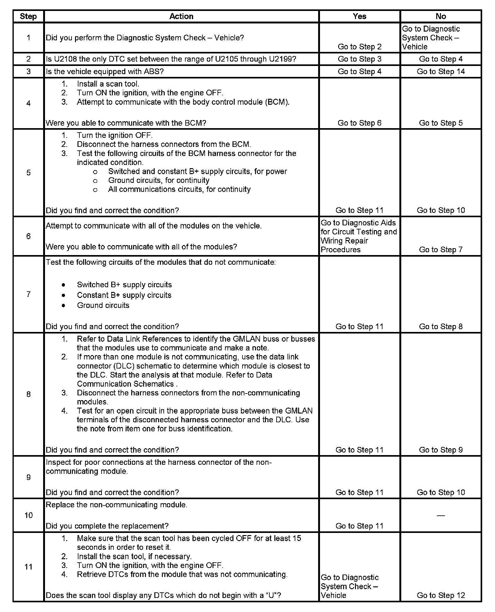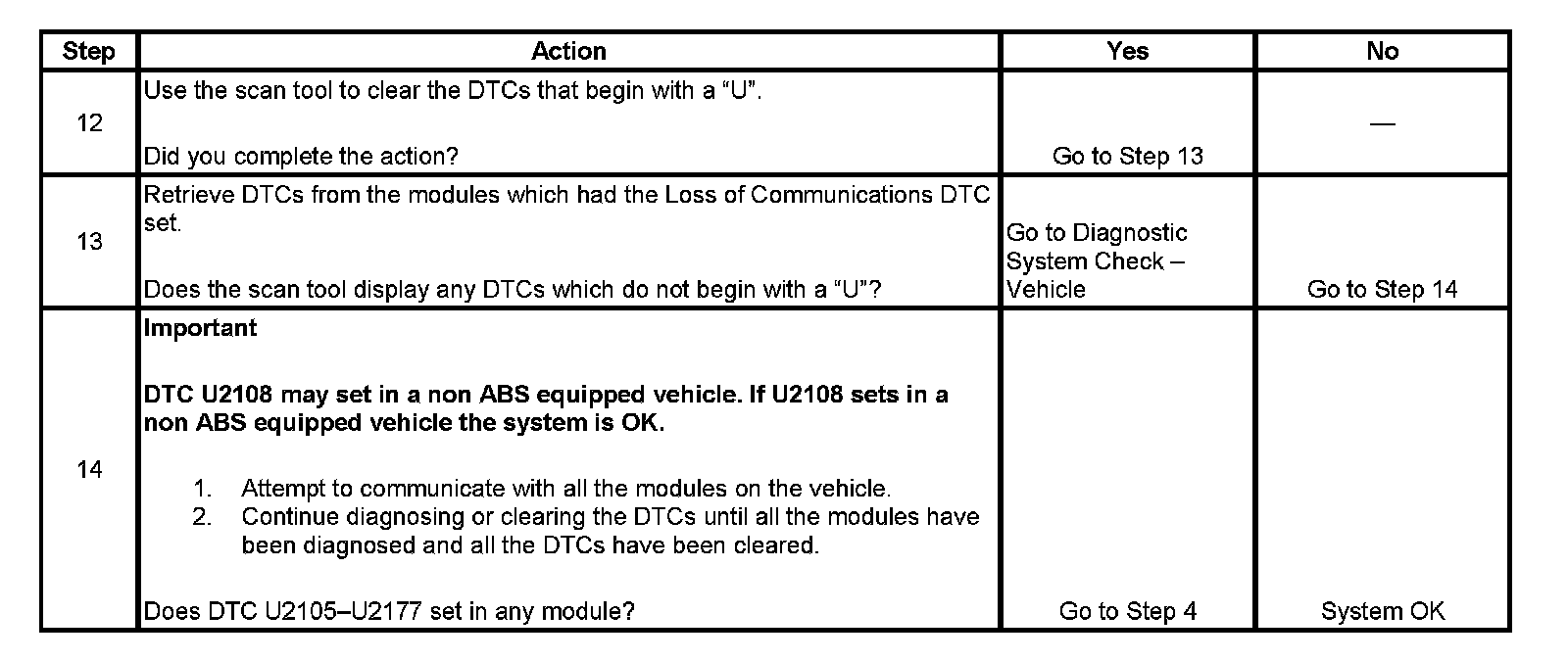3. Non ABS equipped vehicles may set a DTC U2108 falsely. If this is the case there is no malfunction with this system.