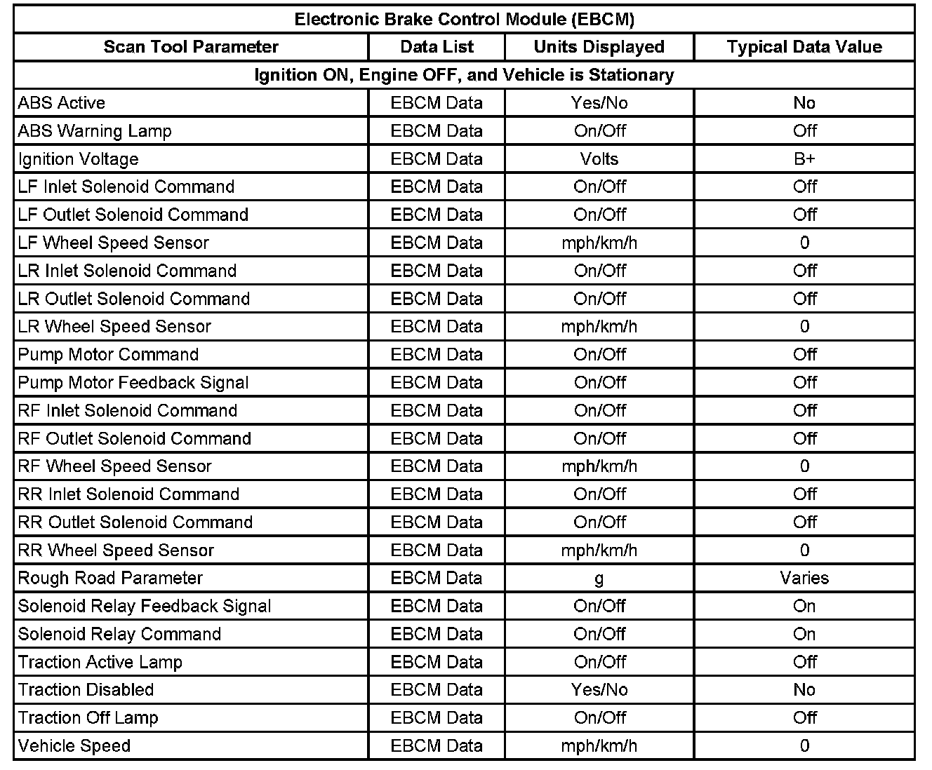 Scan Tool Data List