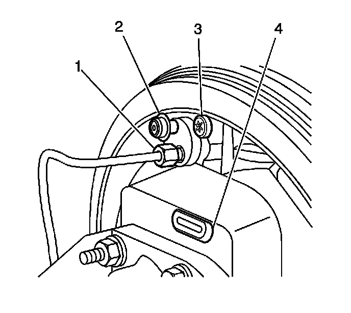 6. Disconnect the brake pipe fitting (1) from the wheel cylinder. Cap the exposed brake pipe end to prevent fluid loss and contamination.