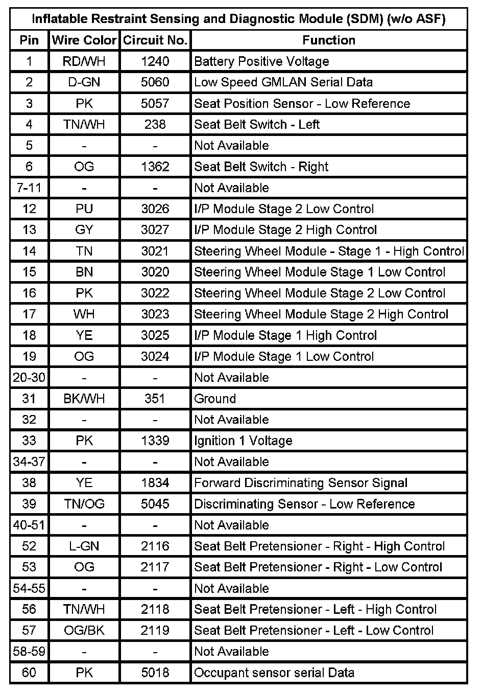 Inflatable Restraint Sensing and Diagnostic Module (SDM) (w/o ASF)