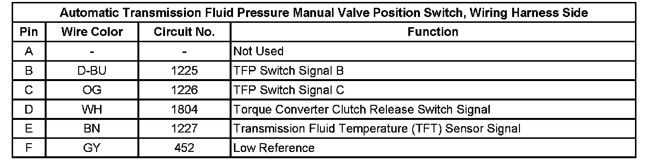 Automatic Transmission Fluid Pressure Manual Valve Position Switch, Wiring Harness Side