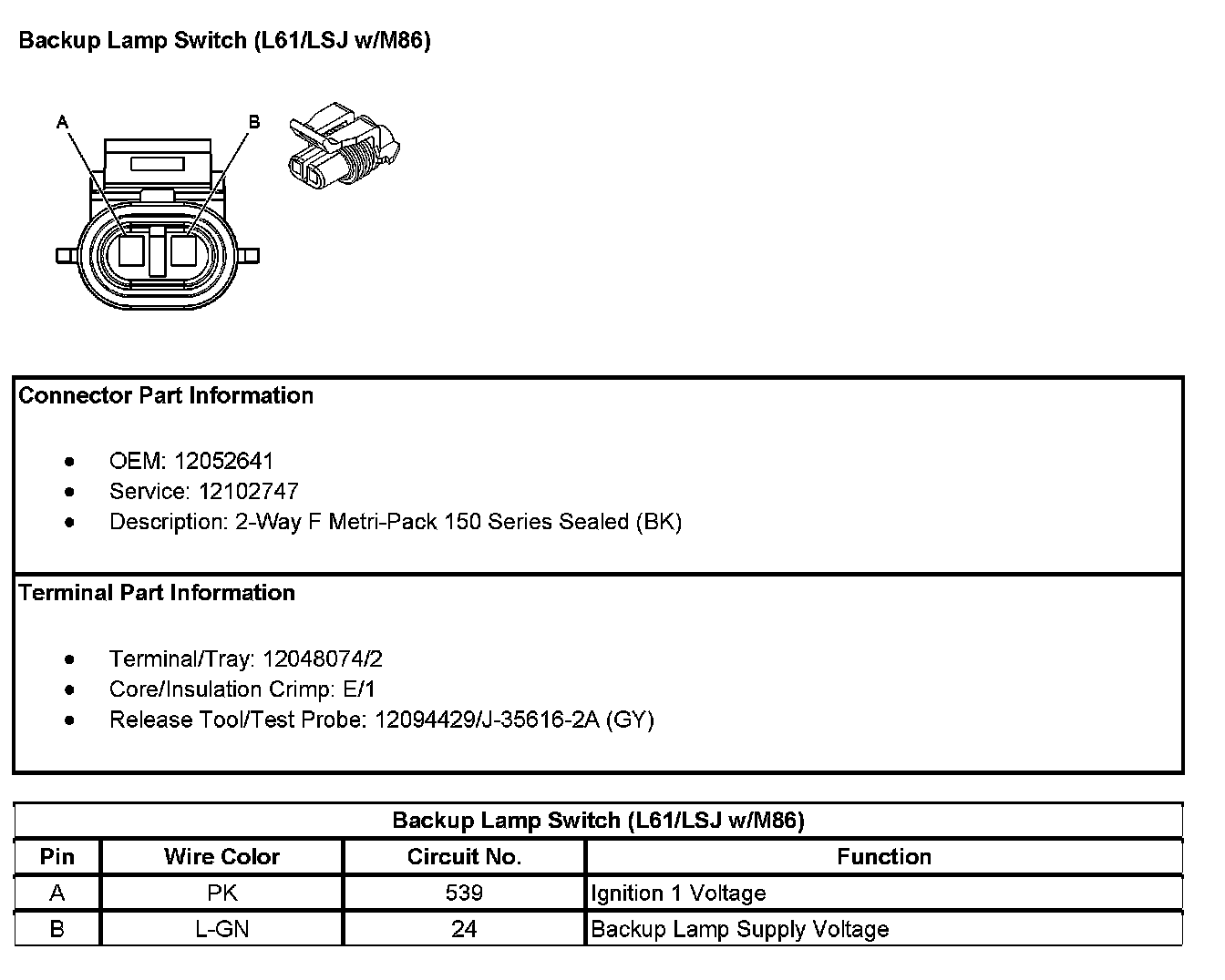 Backup Lamp Switch (L61/LSJ With RPO Code M86):