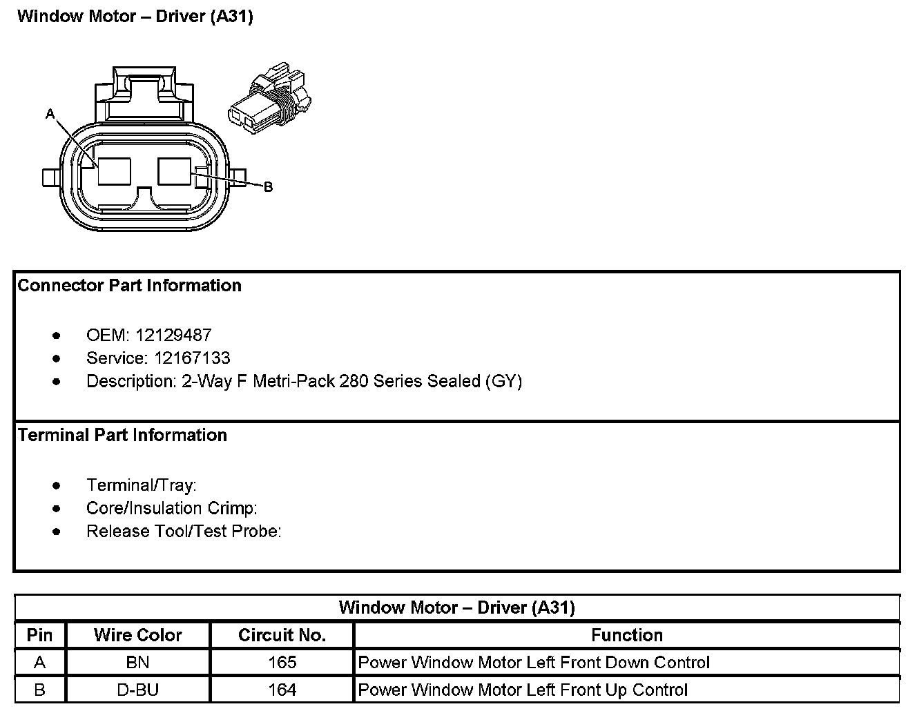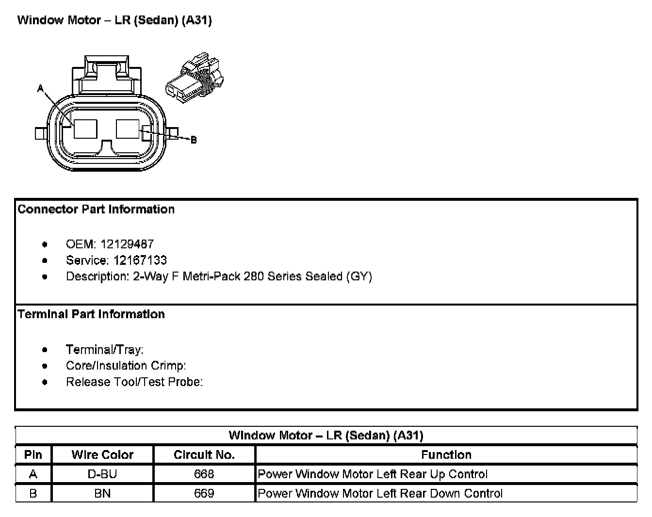 Window Motor - LR (Sedan) (With RPO Code A31):