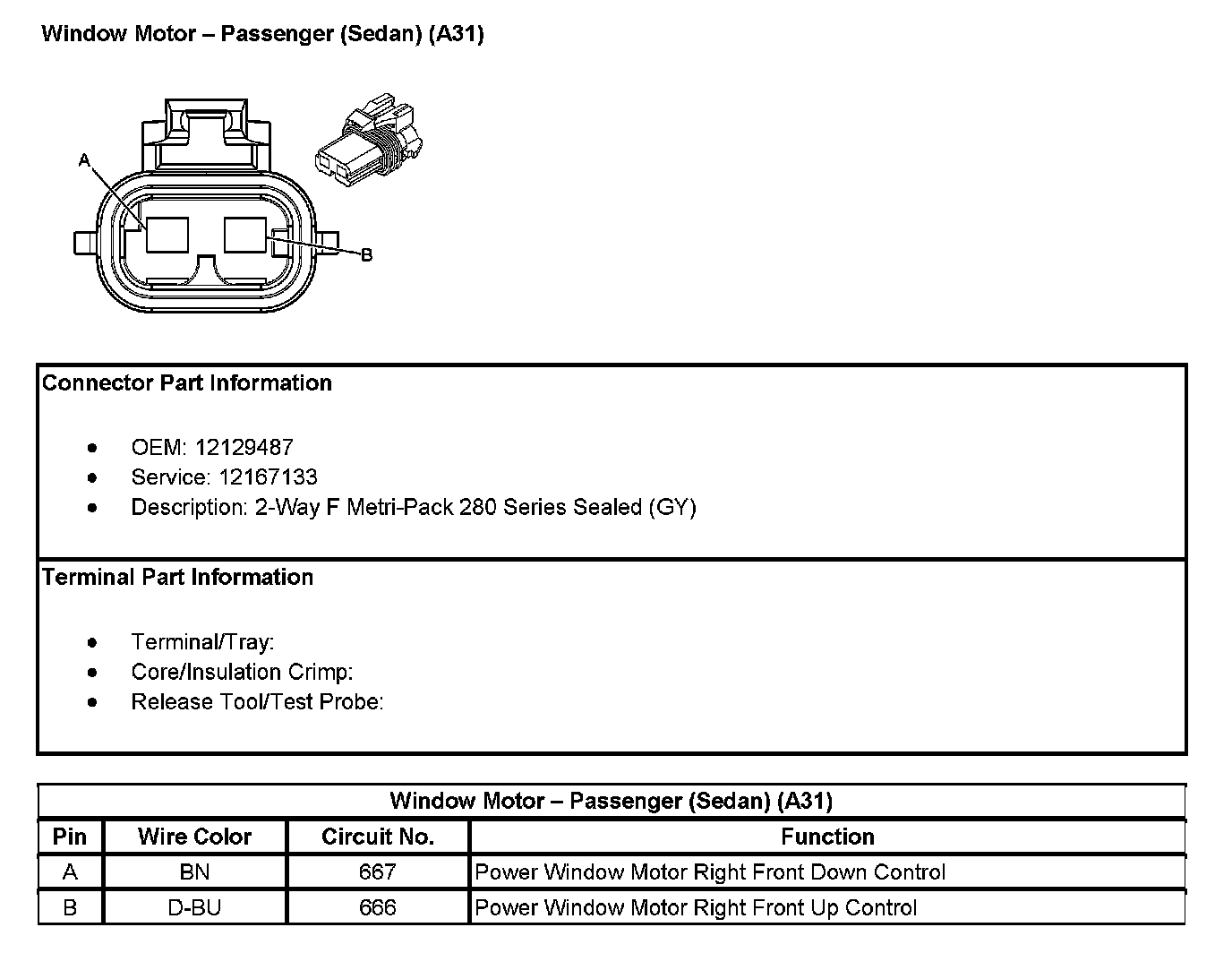 Window Motor - Passenger (Sedan) (With RPO Code A31):