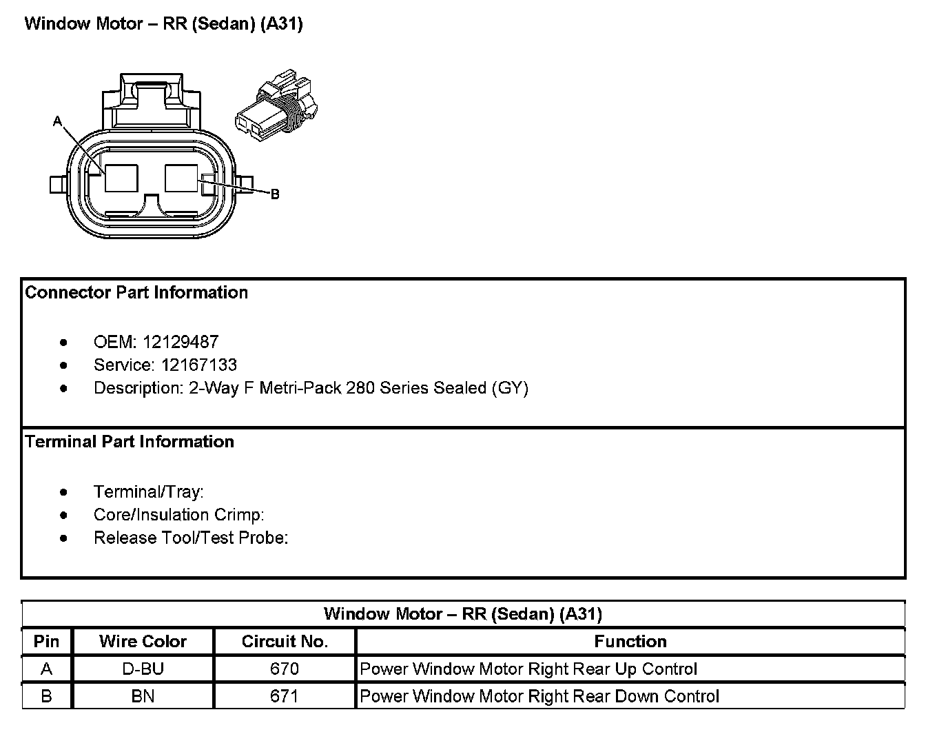 Window Motor - RR (Sedan) (With RPO Code A31):