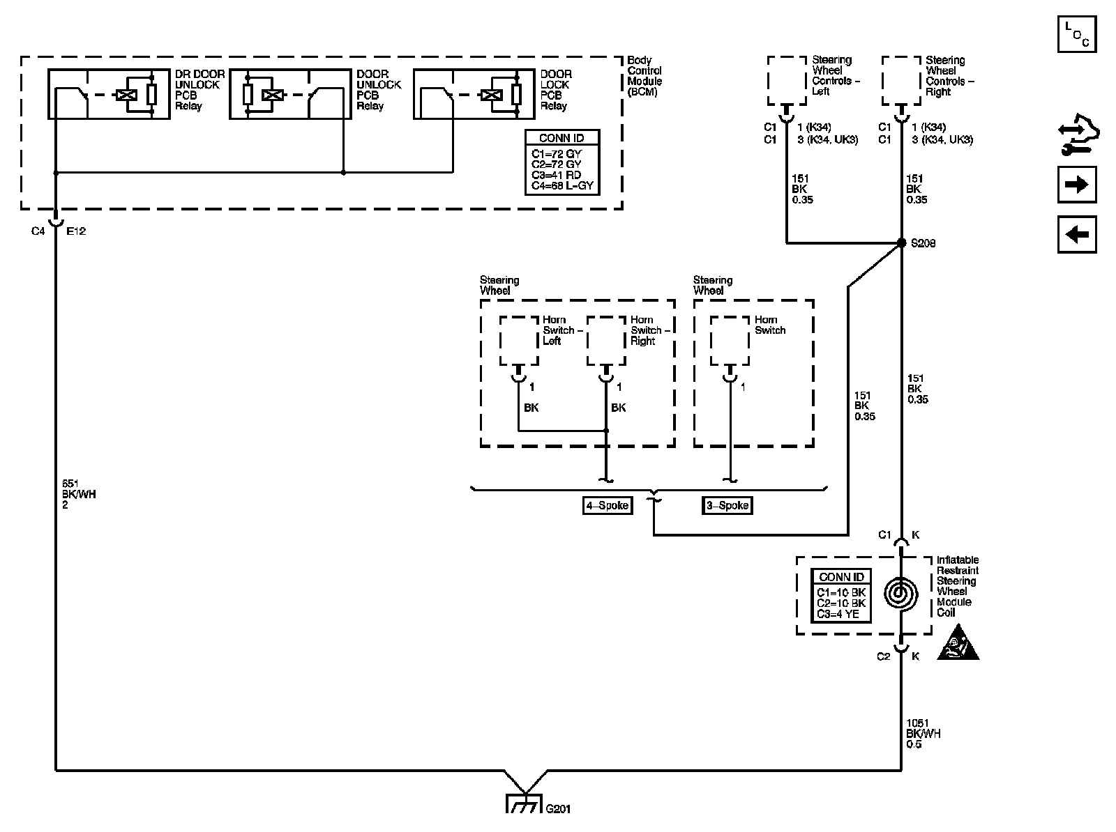 The locations for the Connectors, Grounds, Splices, and Grommets shown within these diagrams can be found via their numbers at Vehicle Locations.