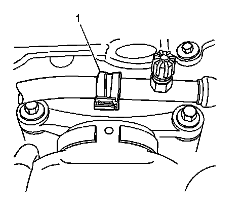 1. Remove the A/C low pressure line retaining bracket (1) nut.
